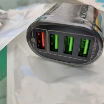 This multi-port USB wall charger is reliable and meets expectations. The three ports charge my devices at a standard pace, while the last port delivers fast charging for my phone and tablet. It's especially useful for travel when multiple devices need simultaneous charging. However, the bright lights can be a bit bothersome at night.