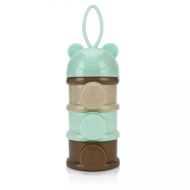 I struggled with the formula container for a long time and finally chose this container. I was very pleasantly surprised when I received it, and it was better and cheaper than I expected. I will order another set so that I can have two sets, one for powdered milk and one for small snacks. The top cap comes off and fits perfectly inside the bottle, so you won't spill the formula everywhere. They snap together tightly, so you can keep them in one place and stay connected.