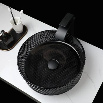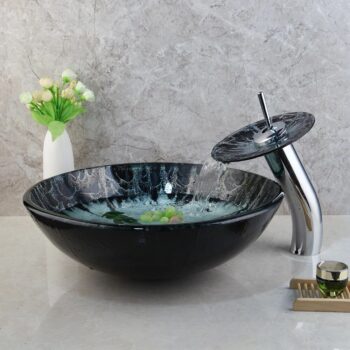 Crystal Glass Vessel Sink and Faucet Combo – Contemporary Black Bathroom Countertop Basin