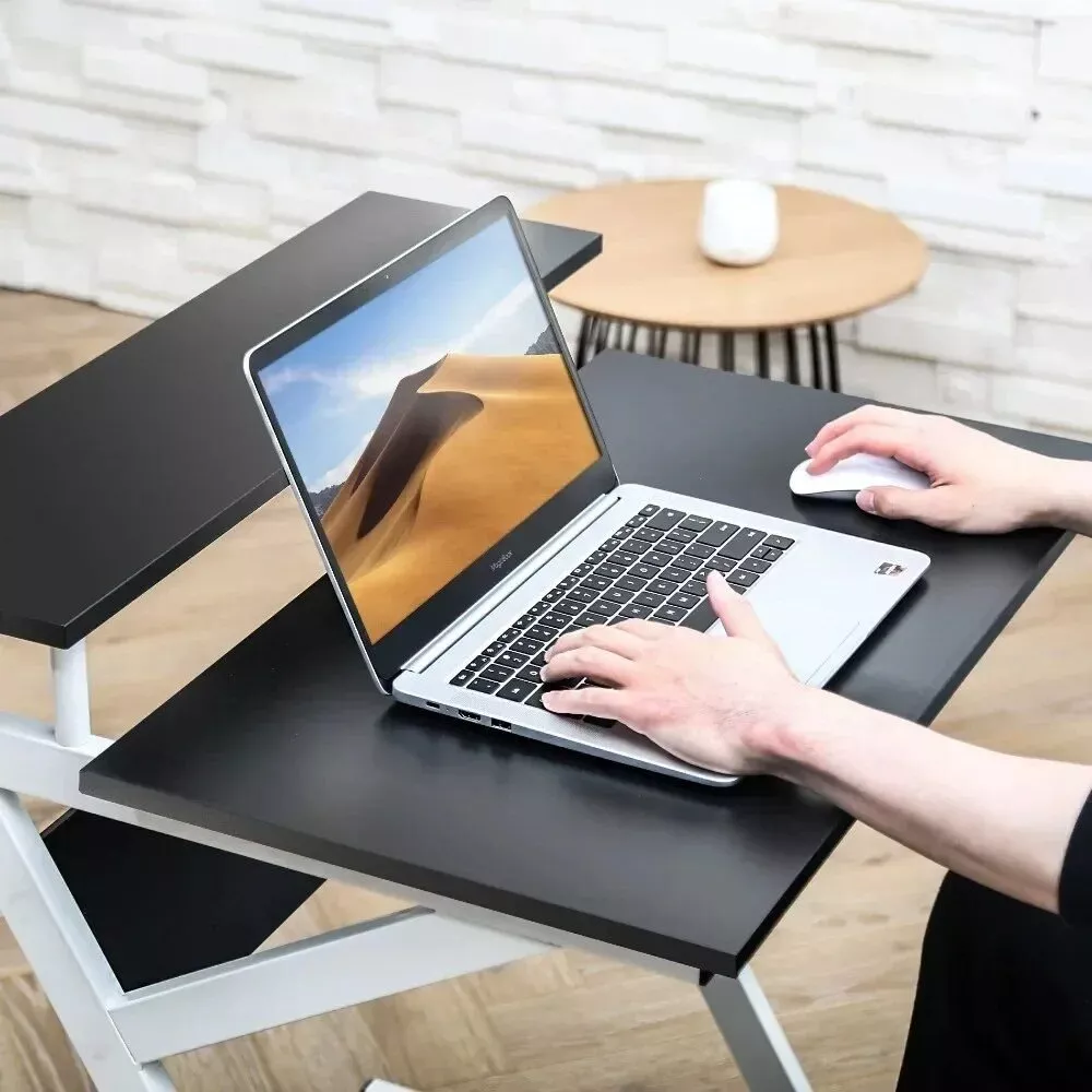 The unique Z-shaped design sets this desk apart. It’s not just a piece of furniture, but a reflection of a modern, dynamic lifestyle. Coupled with its dual-level desktop and bottom shelf, it offers unparalleled efficiency in space utilization. Its versatility and style make it an exceptional choice for those who value both form and function.