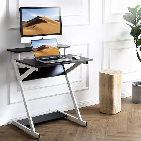 Finding a desk that fits in my cramped space while still being functional was a challenge until I discovered this Z-shaped desk. Its sleek design not only complements my decor but also offers the perfect workspace solution. The monitor shelf keeps my screen at an ideal height, reducing neck strain, and the bottom shelf provides ample storage for my essentials. T he assembly process was straightforward, with clear instructions. It's sturdy, stylish, and the perfect size for small spaces. This desk has truly enhanced my productivity and comfort while working from home.
