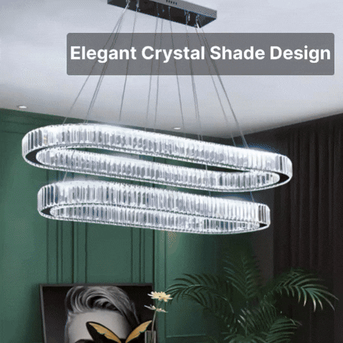 Bring a touch of sophistication to any room with our Contemporary LED Crystal Ceiling Pendant. Designed for modern living, this stylish fixture combines the allure of sparkling crystals with the sleekness of chrome, casting a warm and inviting glow in your dining room, kitchen, or bedroom. Its unique oval ring shape is not just an illumination source, it’s a statement piece that complements your home decor.
