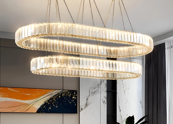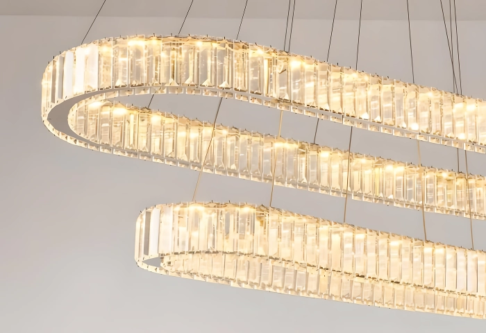 I'm thrilled with this unique, circular crystal chandelier. It was surprisingly easy to install and looks absolutely fantastic. It's a standout piece that enhances the aesthetic of any room it's placed in.