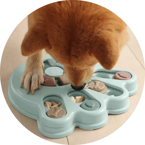 I wasn’t sure if my dog would have anything to do with this. I put treats in it and set it by my dog’s bed. I adopted him after he was rescued from a hoarding situation so he really hasn’t had toys to play with. I’ve had to teach him how to play with them. I noticed the freebie treats were gone one day and checked the rest of the puzzle. All gone! I was amazed. Filled it back up and left it for a few days. Empty again. Now I’ve watched him do it and it’s so funny. I’m going to try to get a video of it. He’s a 15lb chiweenie. Half chihuahua half dachshund and much smarter than I gave him credit. lol