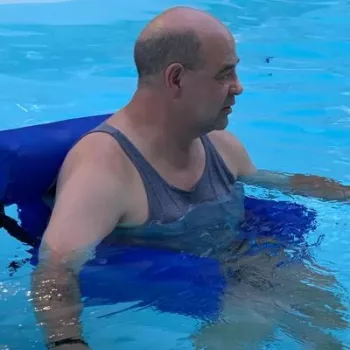 This water chair is slightly smaller than my husband's but still comfortably fits. I appreciate the adjustable straps for different body sizes.
