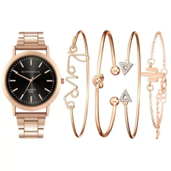Luxury Quartz Watch & Gemstone Bracelet Set for Women