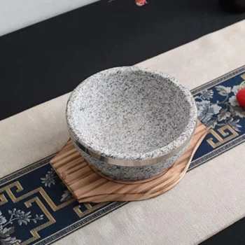 Korean Dolsot Stone Bowl Bamboo Trivet – Heat Resistant Wood Base for Hot Dishes