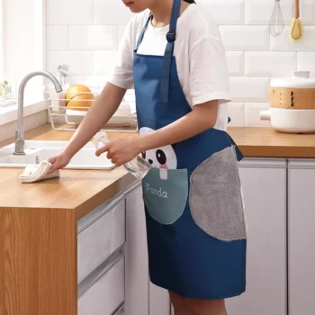 Charming Cartoon Animal Waterproof Apron with Big Pocket & Hand-Wiping Cloth