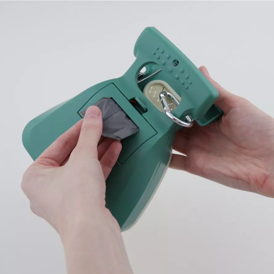 I really love this pooper scooper. A giant step up from a bag in hand. I attached it to my doggie bag with a rubber wrist band. It just made it easier to carry and use without detaching. I ordered the small because my little Jake is a small dog. Pick up is swift and clean most of the time. The scooper expands if you have to pick up from two spots. I tie off while closed and leave it there until I get to the waste can. I ordered another to keep in my car. Oh, after I ran out of the small bags that fit into the scooper and couldn’t find more in that size, I just started using the bags I already had like the one in the picture. They don’t fit into the handy dispenser on the scooper, but they can fit in your bag or pocket.