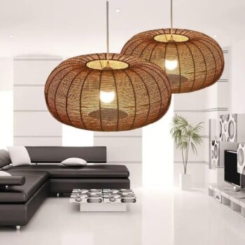 Contemporary Rattan Wicker Floor Lamp – Elegant Iron Lighting for Home Decor