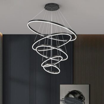 Dimmable Nordic LED Chandelier – Modern 6-Ring Pendant Light for Home & Commercial Spaces