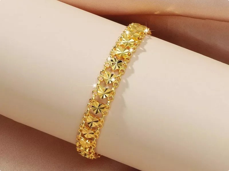 What sets this bracelet apart is its unique blend of timeless design and modern elegance. The gold plating process ensures a rich, radiant finish that mimics the warmth of pure gold, while the incorporation of zircon stones adds a contemporary sparkle. This piece is not just jewelry; it’s a wearable work of art that embodies luxury and finesse.