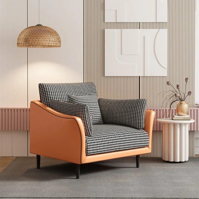 Our Modern Nordic Single Sofa Chair is versatile enough for any setting. It’s perfect for a relaxing read in your bedroom, a comfortable seat in your living room, or even as an elegant addition to your office space. Its compact size makes it suitable for small apartments while still offering the comfort of a larger sofa.