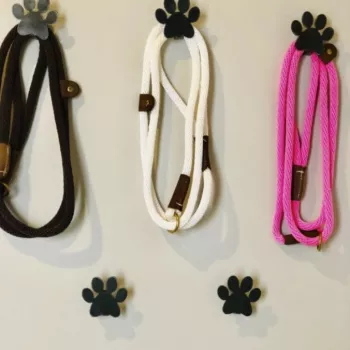 This paw is so cute! It was smaller than I expected but it was the PERFECT size so I am glad I bought it. It holds my dog's leash perfectly, I just drape it over. The products are made by a father-daughter company so I was glad I supported them instead of a corporation!