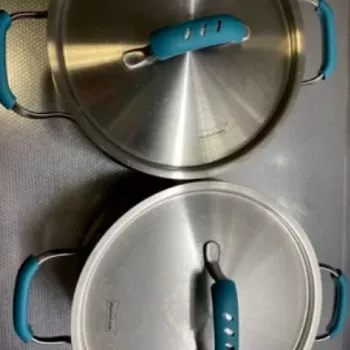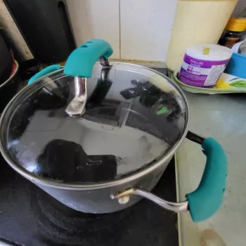 These silicone handle covers are the greatest invention ever. Light, easy to clean, readily accessible, and heat-resistant.
