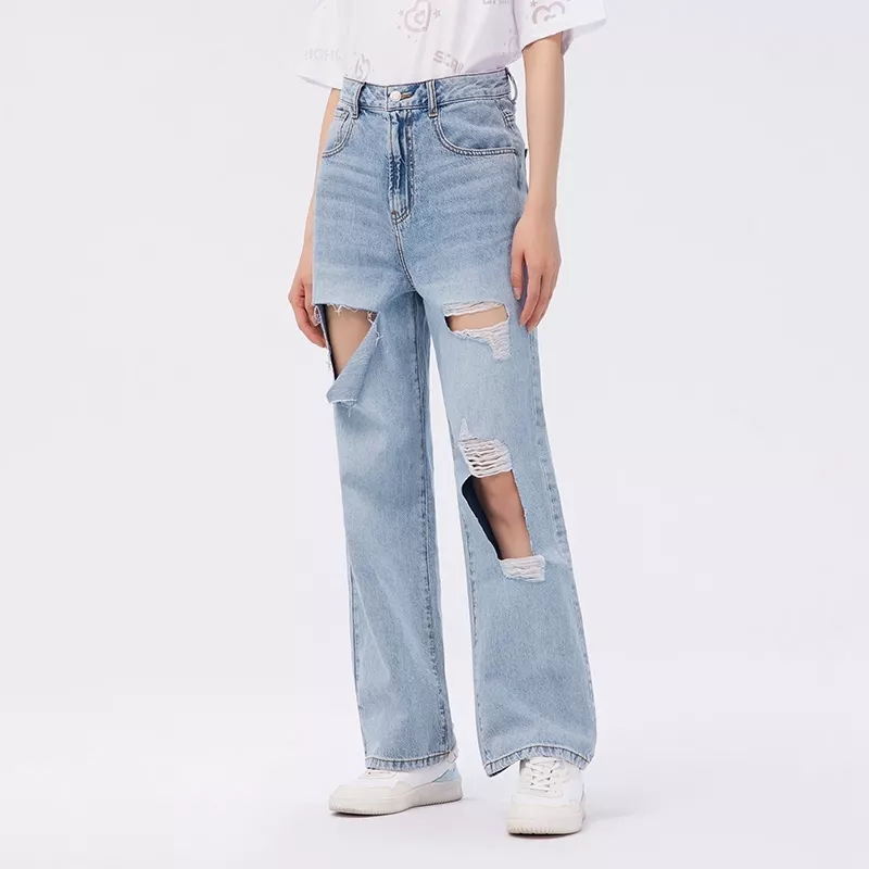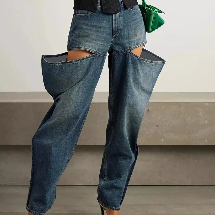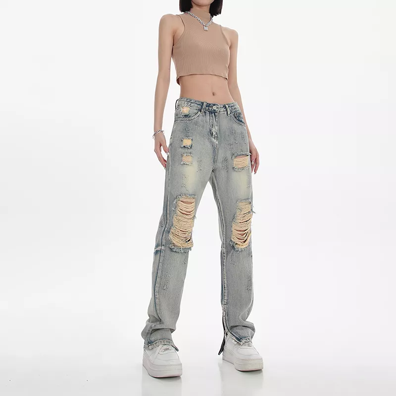 High-Waist Striped Wide-Leg Jeans for Women – Fashionable Street Style Pants