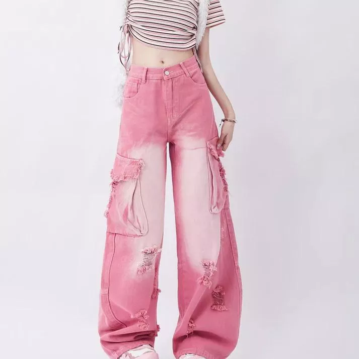 Stylish Pink Gradient Wide Leg Jeans for Women