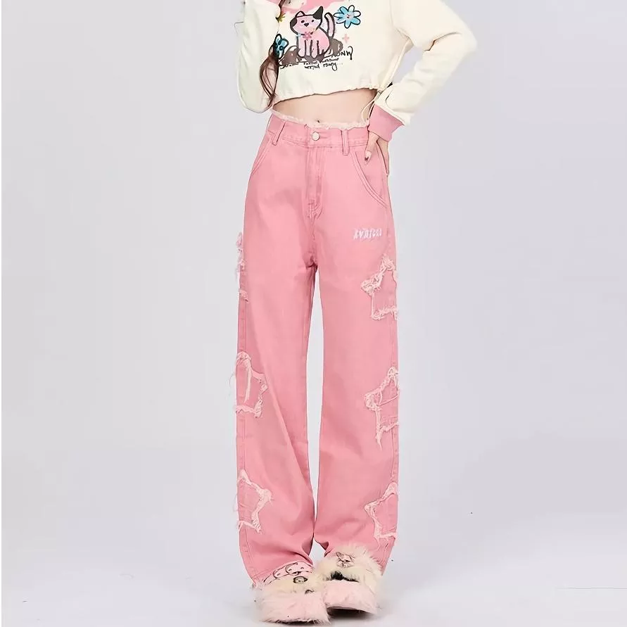 Pink High Waist Baggy Jeans | Straight-Leg Denim Pants for Women | Y2K Vintage Style
