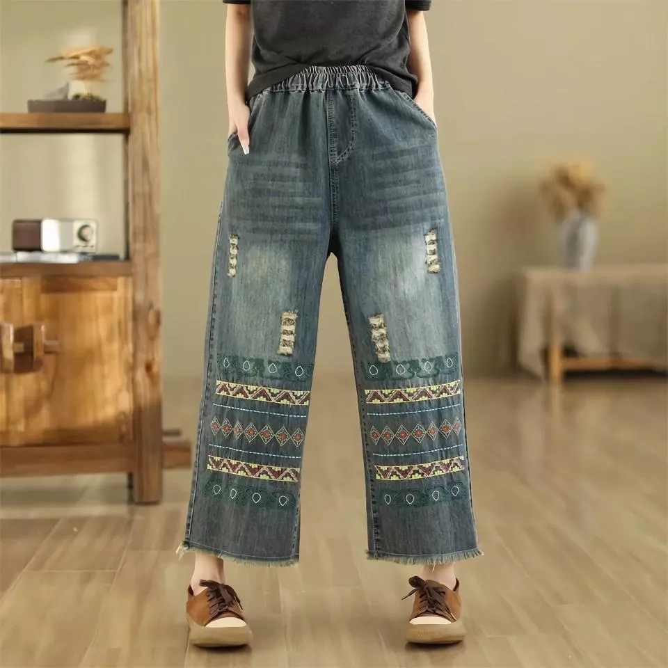 Boho Chic Vintage Embroidered Wide-Leg Jeans