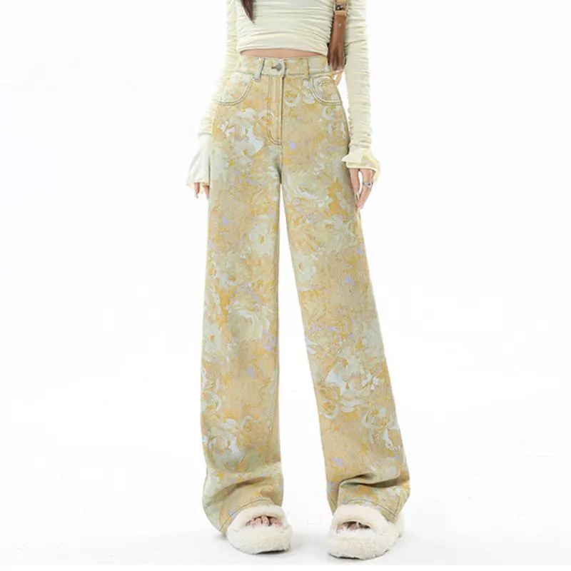 Women’s High-Waist Moon Print Baggy Jeans: Casual Vintage-Inspired Denim