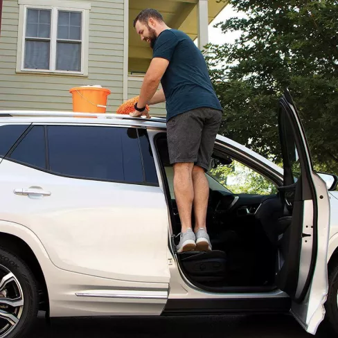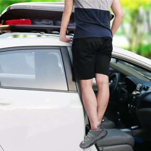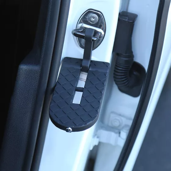 I used to carry a folding step with me to get up into the rooftop carrier on top of my Subaru SUV. This doorstep gets me higher for great access to my carrier. It is perhaps a little too high, but that is OK. I step on the door jam of the car then up onto the doorstep with the other foot. Feels very solid and secure. There is a layer of rubber where the step is next to the car so that the car's door jam does not get scratched. It can be used on the front or back door, so great access to the full carrier without having to reach too far. It folds very small so that I can store it in the driver's door storage compartment for easy access.